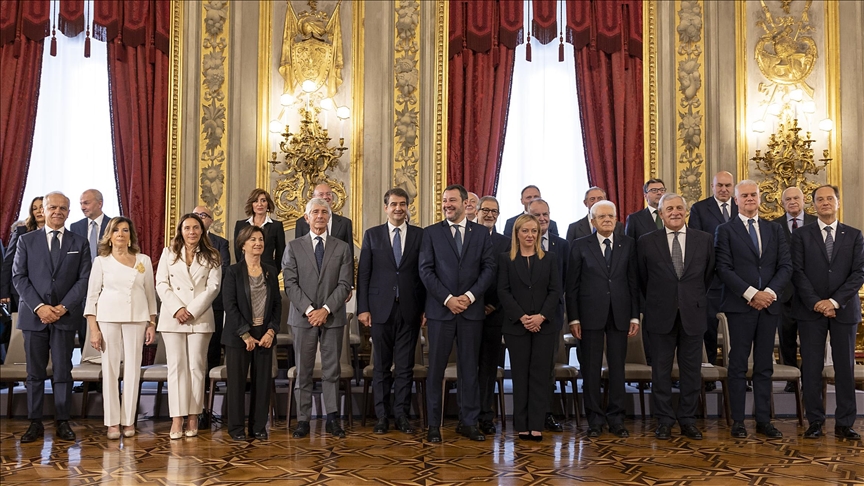 Cumhurbaşkanlığı Sarayı Quirinale'de düzenlenen törende, Başbakan Giorgia Meloni ve lideri olduğu sağ koalisyonun 24 bakanı, Cumhurbaşkanı Sergio Mattarella'nın huzurunda tek tek yemin etti.