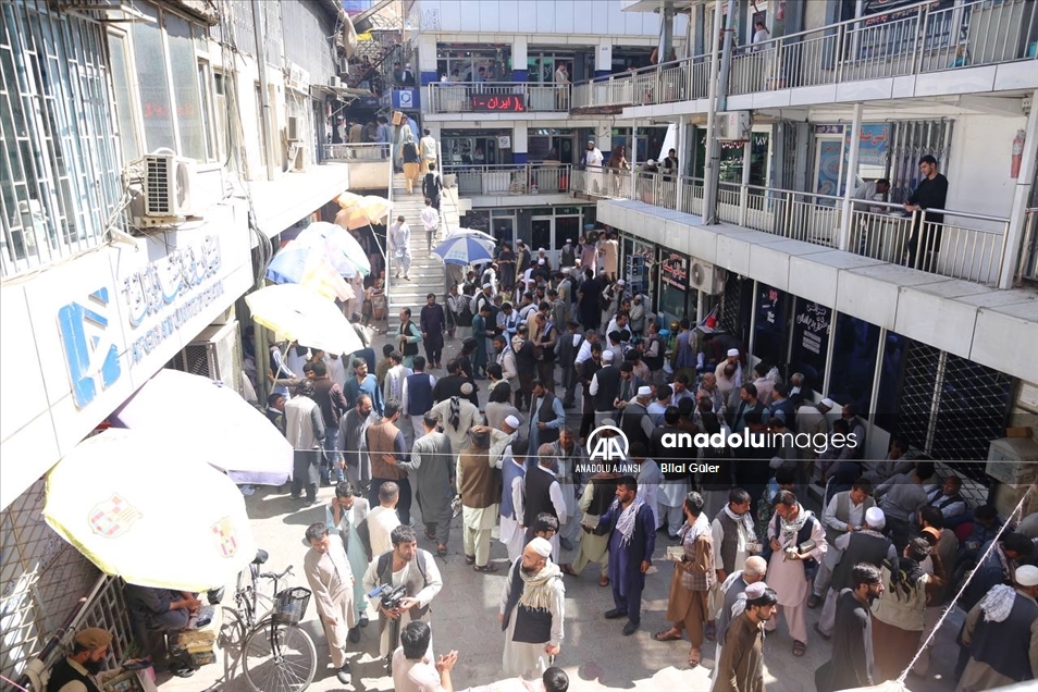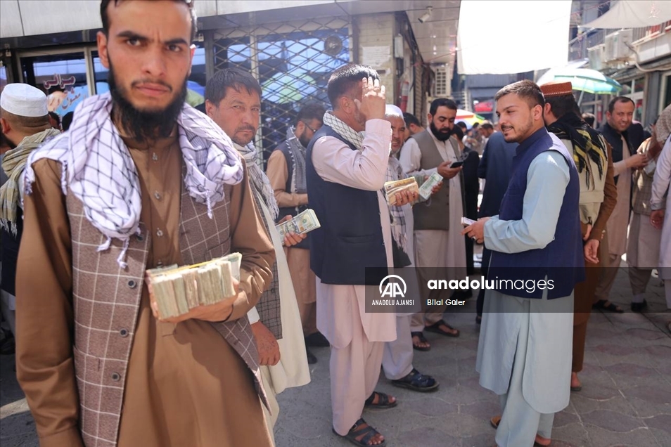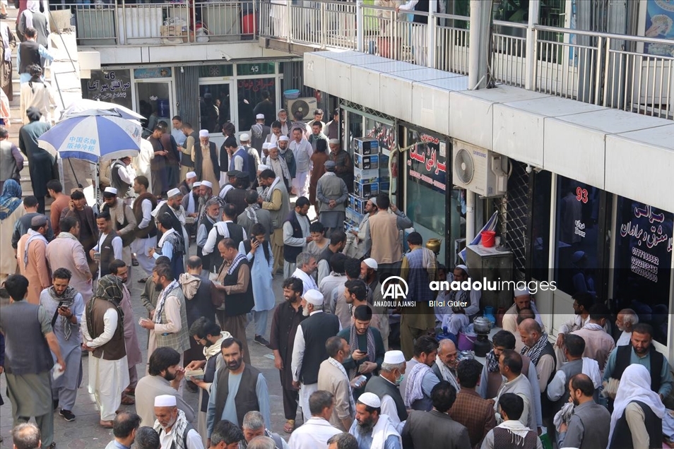 Kabil'de yeniden açılan döviz bürolarına Afgan halkı yoğun ilgi gösterdi