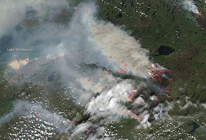 Saskatchewan, Alberta ve British Colombia'da etkili olan orman yangınlarının dumanları, kilometrelerce uzaktan bile görülmeye başlandı. Sadece Saskatchewan eyaletinde 450 bin hektara ulaşan yanan ormanlık alanın, diğer iki eyalette yanan alanlarla daha büyük rakamlara ulaştığı sanılıyor.