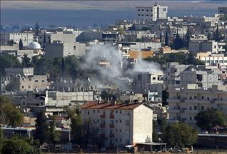 Bölgenin Suruç sınırına yakın bölümünde gün boyu aralıklarla süren çatışmalar, akşama doğru yoğunlaştı. Özellikle sınır kapısı yakınındaki sokak aralarında artan çatışmalar sırasında, binalar arasında bez parçalarından oluşturulan perdelerin kaldırıldığı görüldü.