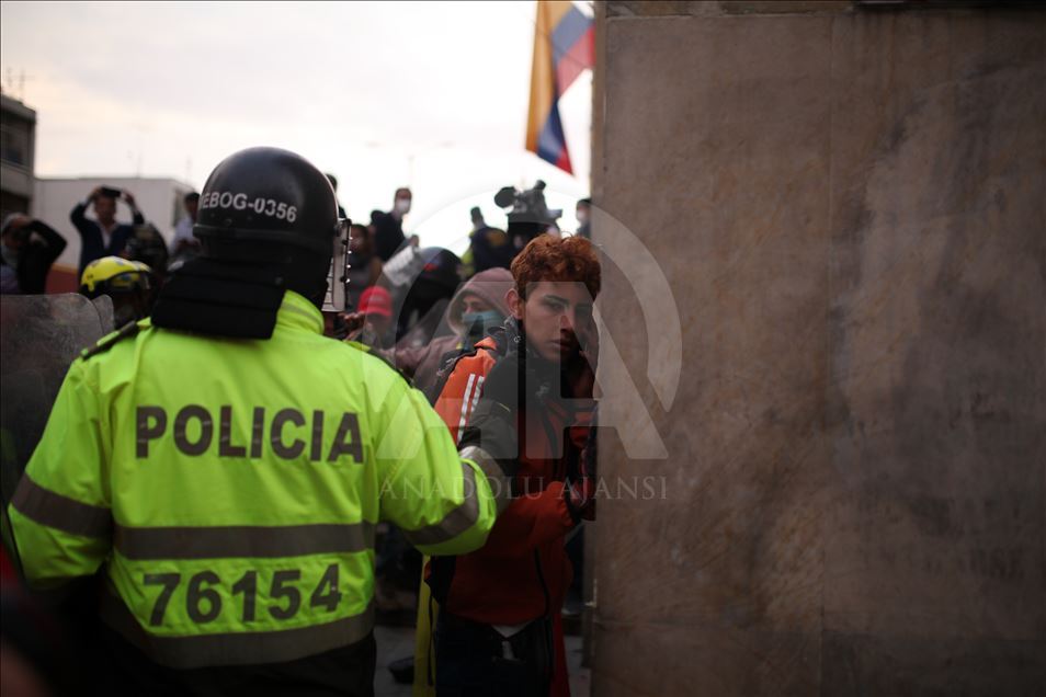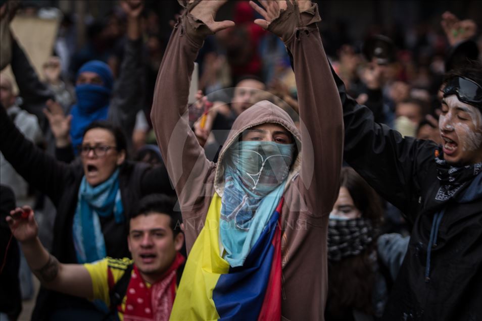 Kolombiya'da işçi sendikaları, öğrenci grupları, çeşitli yerli topluluklar ve yüzlerce STK'nin çağrısıyla alınan genel grev kararının ardından başkent Bogota başta olmak üzere birçok şehirde hükümet karşıtı protestolar düzenlendi. Başkent Bogota'da şiddet eylemlerine dönüşen ve polisle göstericiler arasında çatışmalara neden olan gösteriler sebebiyle sokağa çıkma yasağı ilan edildi. ( Juancho Torres - Anadolu Ajansı )