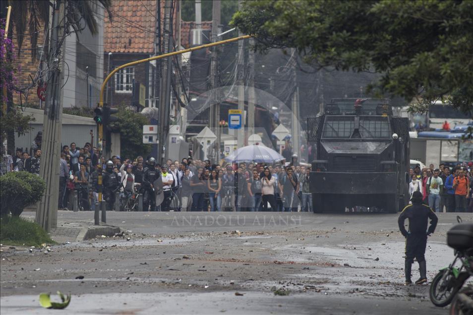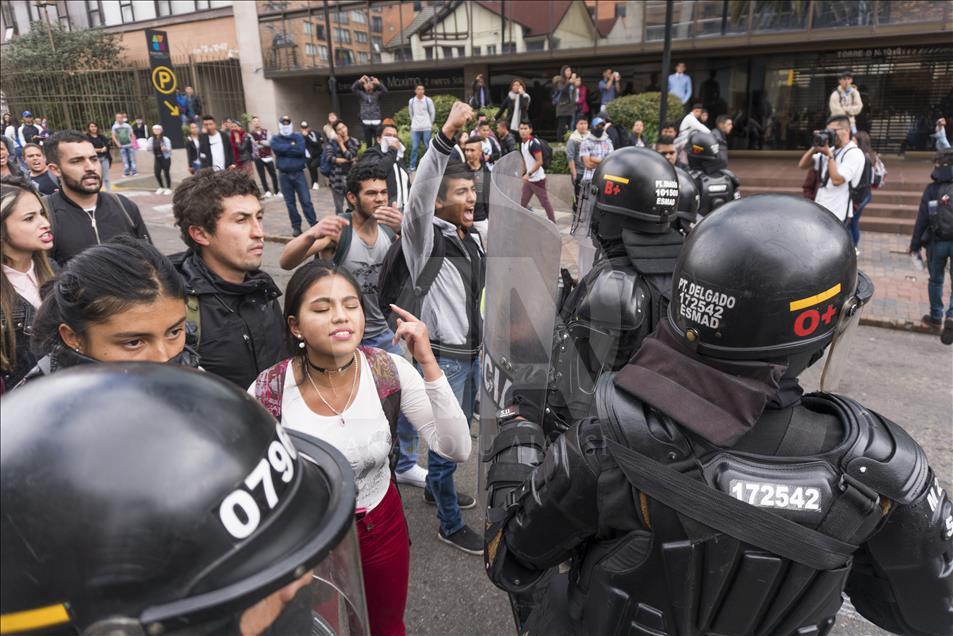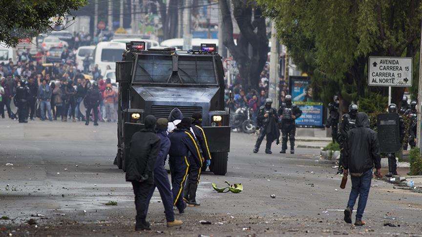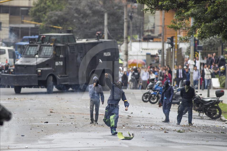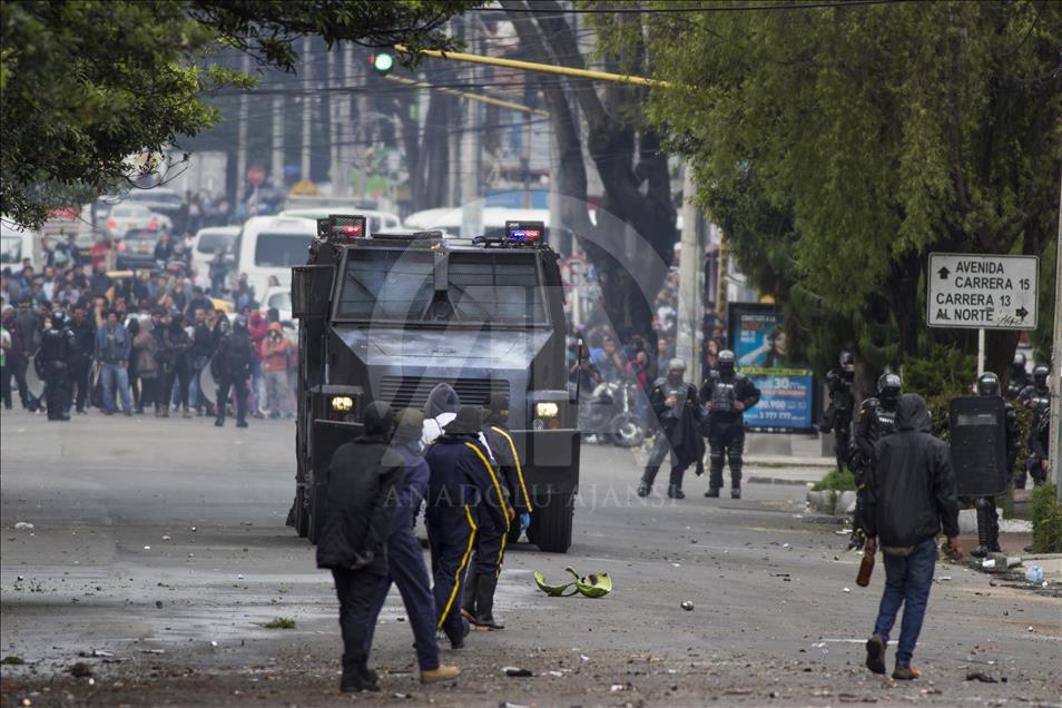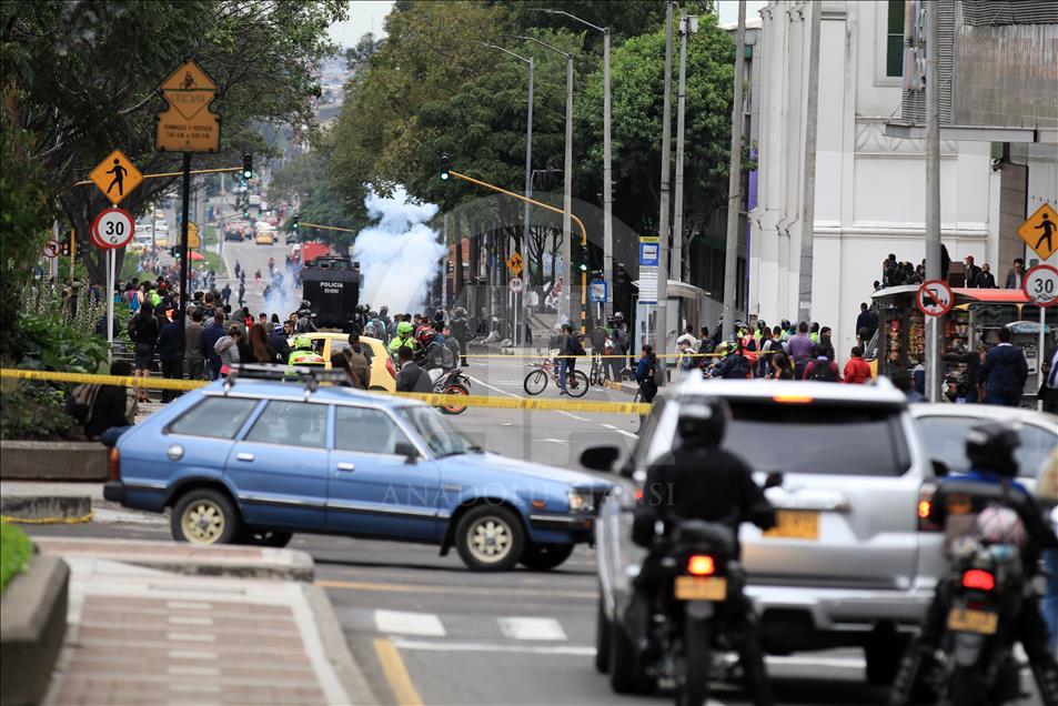Kolombiya'nın başkenti Bogota'da, Ulusal Pedagoji Üniversitesindeki protestoda öğrenciler ile polis arasında çatışma çıktı.