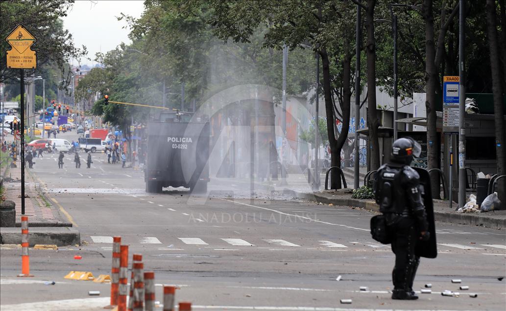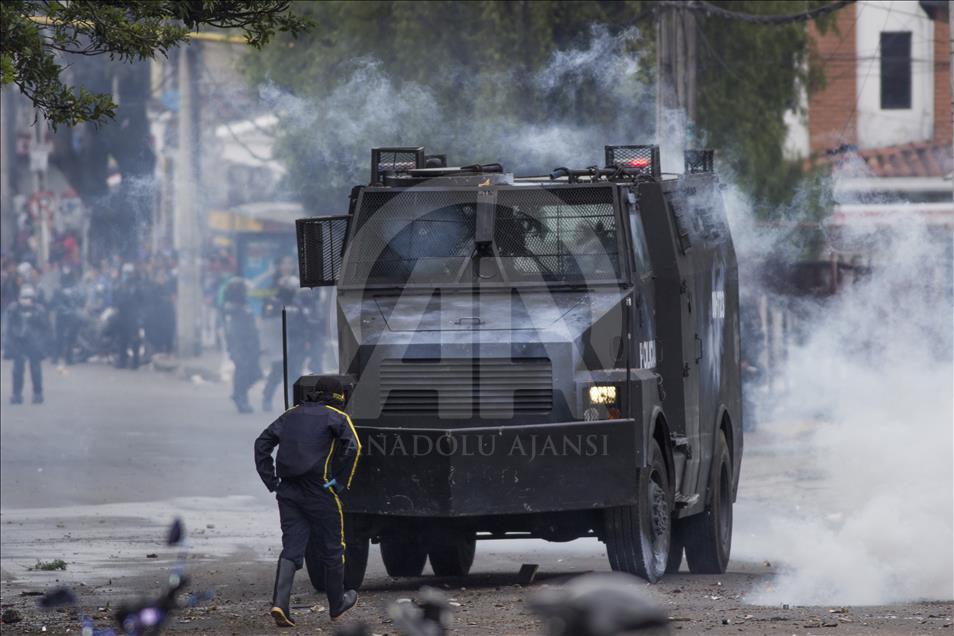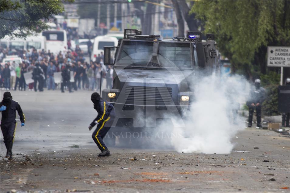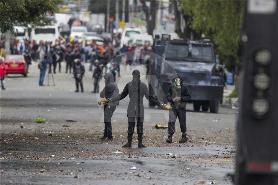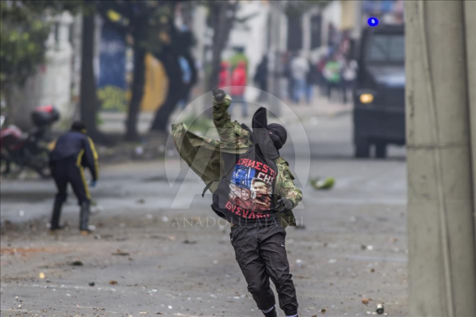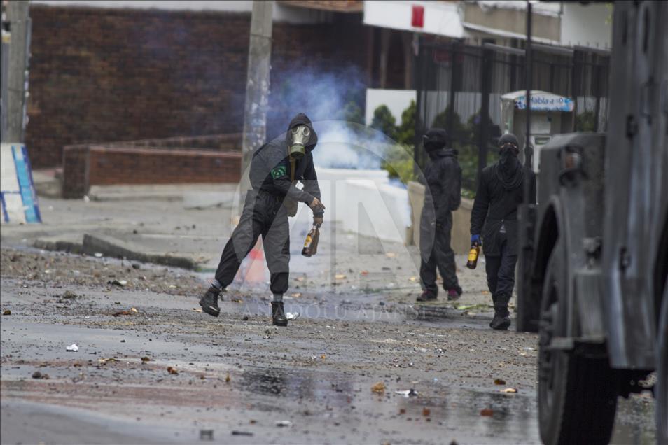 Kolombiya'nın başkenti Bogota'da, Ulusal Pedagoji Üniversitesindeki protestoda öğrenciler ile polis arasında çatışma çıktı. Henüz bilinmeyen bir nedenle düzenlenen protestonun okul dışına taşması ve Şili Bulvarı'ndaki trafik akışını engellemesi üzerine güvenlik güçleri müdahalede bulundu. Öğrencilerin, polise el yapımı ses bombalarıyla saldırdığı olayda güvenlik güçleri de göstericileri dağıtmak için tazyikli su ve biber gazı kullandı. ( Daniel Garzon - Anadolu Ajansı )
