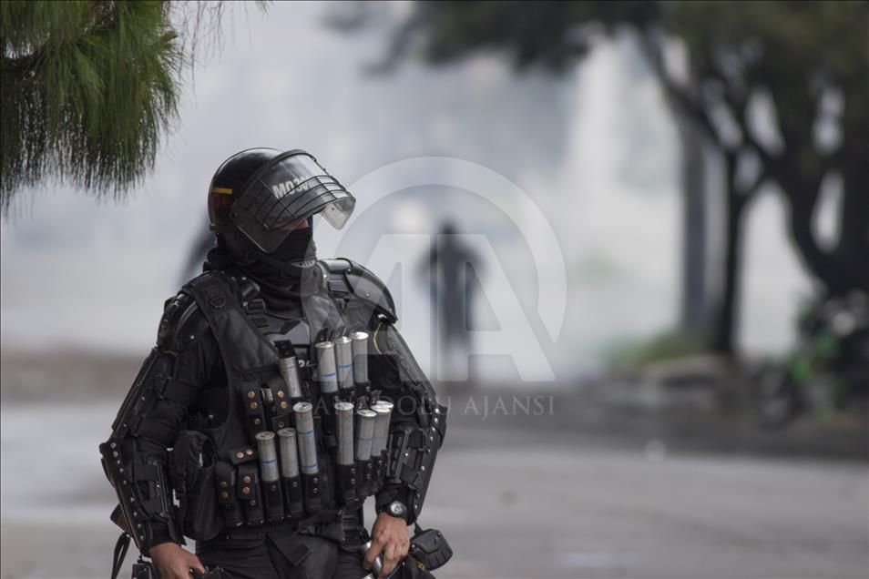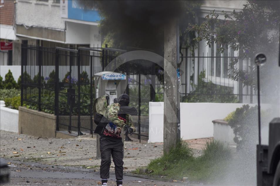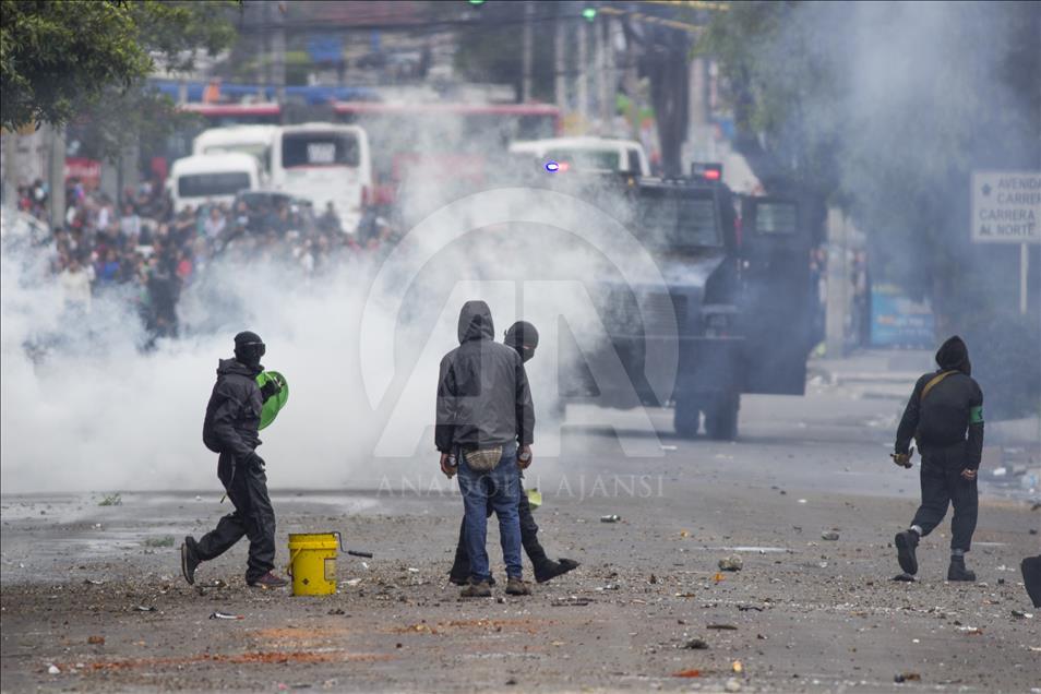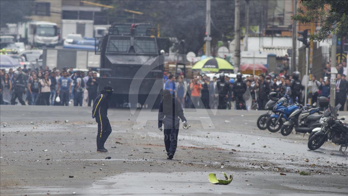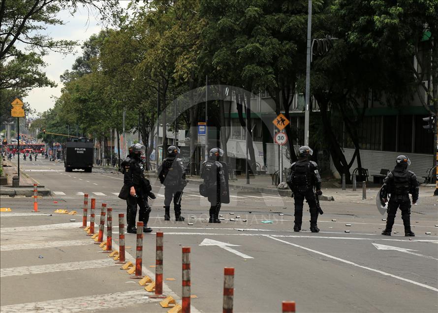 Kolombiya'nın başkenti Bogota'da, Ulusal Pedagoji Üniversitesindeki protestoda öğrenciler ile polis arasında çatışma çıktı. Henüz bilinmeyen bir nedenle düzenlenen protestonun okul dışına taşması ve Şili Bulvarı'ndaki trafik akışını engellemesi üzerine güvenlik güçleri müdahalede bulundu. Öğrencilerin, polise el yapımı ses bombalarıyla saldırdığı olayda güvenlik güçleri de göstericileri dağıtmak için tazyikli su ve biber gazı kullandı. ( Daniel Garzon - Anadolu Ajansı )