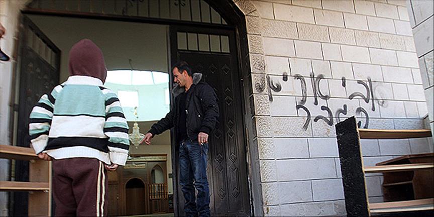 İsrail polisi, kullanılmayan caminin kundaklandığını ve camiye İbranice duvar yazıları yazıldığını belirtti.