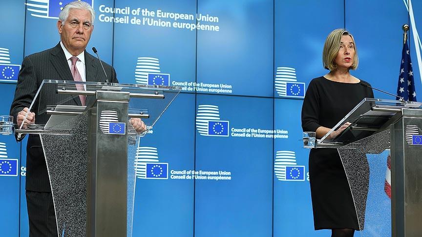 Mogherini ve ABD Dışişleri Bakanı Rex Tillerson, ikili görüşmenin ardından Brüksel'deki AB Konseyi binasında basın toplantısı düzenledi.