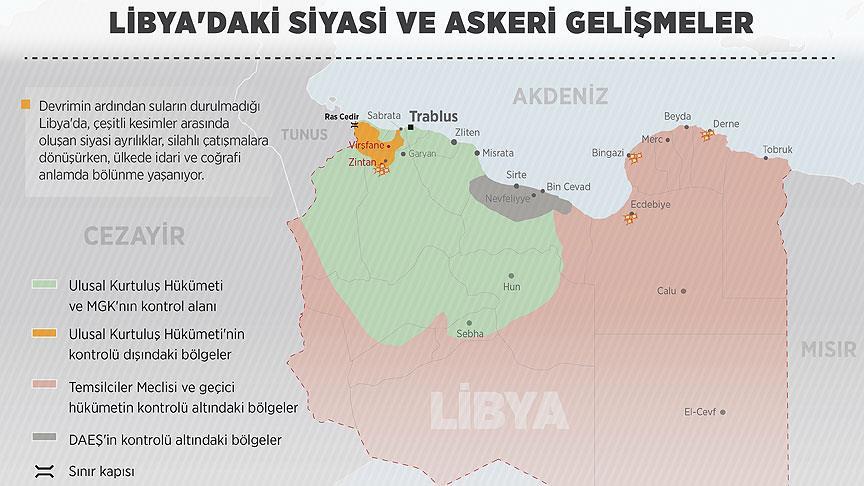 Devrimin ardından suların durulmadığı Libya'da, çeşitli kesimler arasında oluşan siyasi ayrılıklar, silahlı çatışmalara dönüşürken, ülkede idari ve coğrafi anlamda bölünme yaşanıyor.
