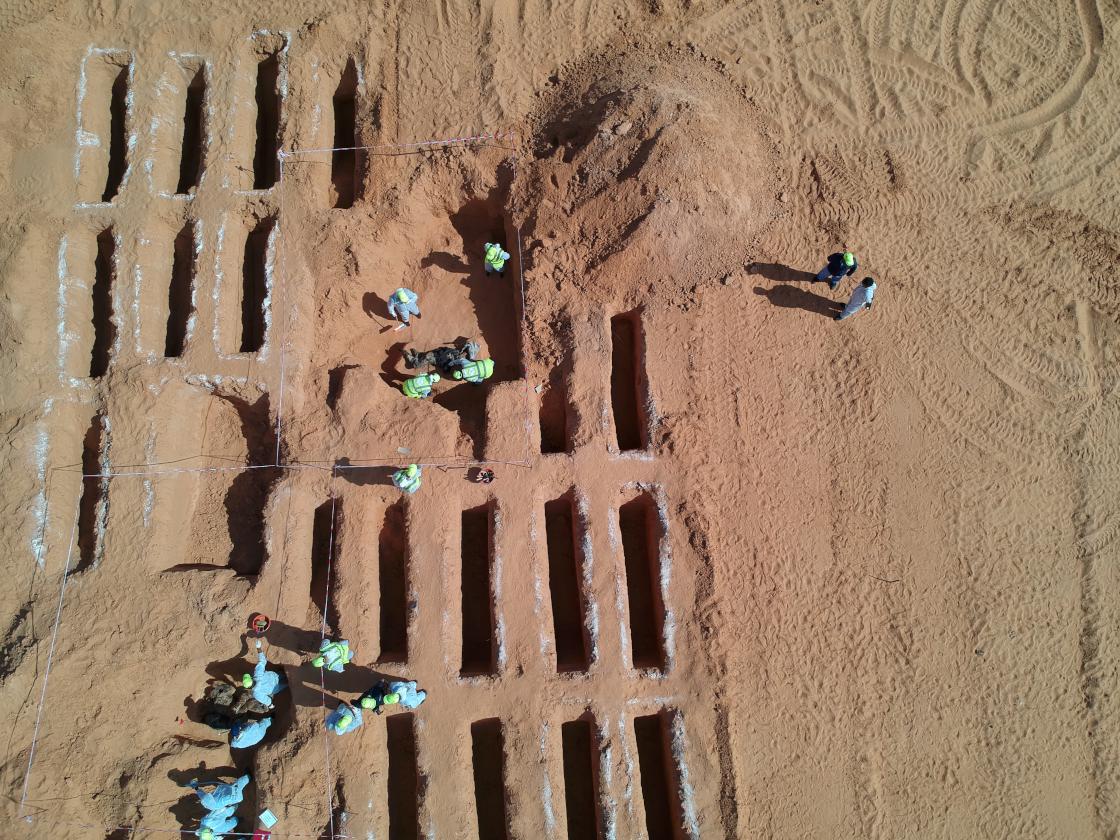 Haziran ayından bu yana süren kazılarda birbiri ardına çok sayıda kadın ve erkek cesedine ulaşılırken, onlarca mezarın tek tek açılmasıyla ortaya çıkan çukur ve kum tepeciklerinin oluşturduğu manzara bölgede yaşanan dehşeti gözler önüne seriyor.