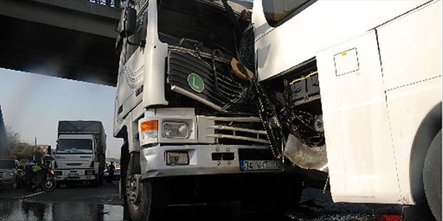 Polis, Macaristan-Romanya sınırı yakınındaki Szeged'de, M5 otoyolunda meydana gelen kazada, kamyonun virajda refüjü aşıp karşı yönden gelen otobüsle kafa kafaya çarpıştığını bildirdi.