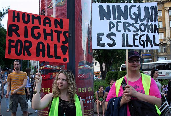Macaristan'ın başkenti Budapeşte'de hükümetin mülteci ve göçmen politikasını protesto için eylem düzenlendi.