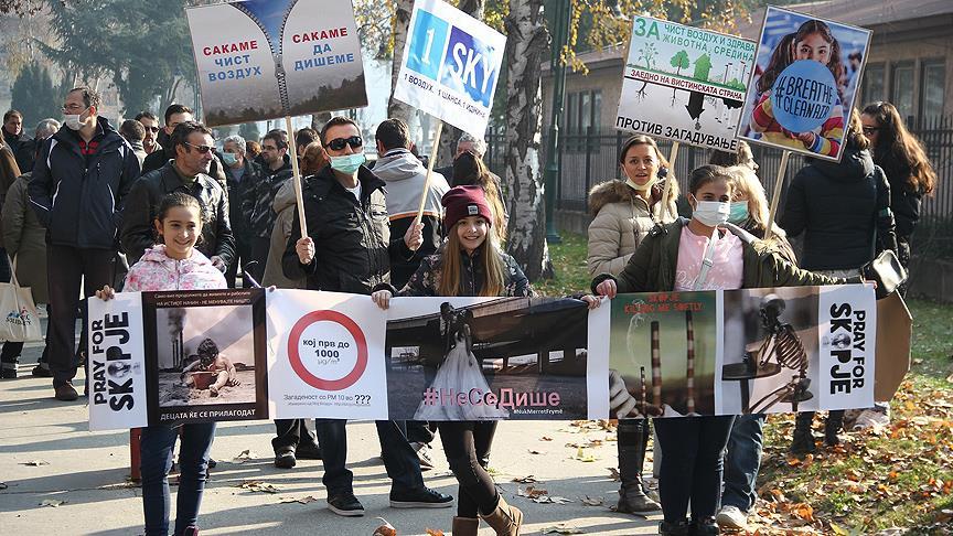 Makedonya'nın başkenti Üsküp'te toplanan bine yakın gösterici, ülkede son dönemde yaşanan hava kirliliğine dikkat çekmek için protesto düzenledi.