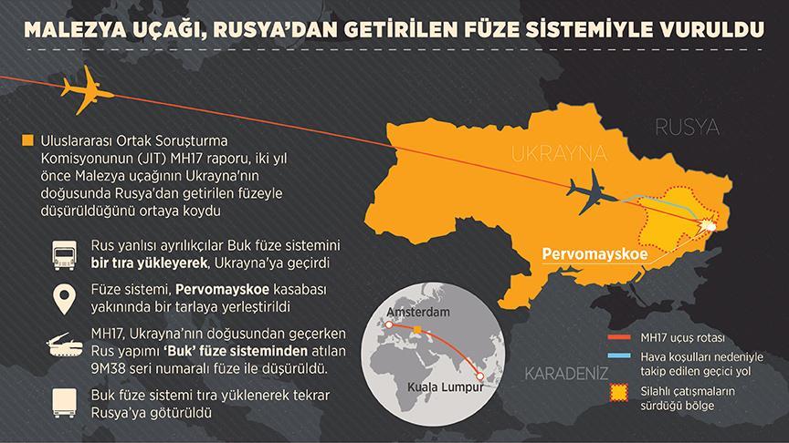 Savcılar tarafından hazırlanan ön raporda yer alan senaryoya göre, 17 Temmuz 2014’te Malezya’nın Kuala Lumpur şehrine gitmek üzere 283 yolcu ve 15 mürettebatı ile Hollanda’nın Amsterdam şehrinden havalanan MH17 sefer sayılı Malezya Havayolları’na ait uçak, Ukrayna’nın doğusundan geçerken Rus yapımı Buk füze sisteminden atılan 9M38 seri numaralı füzeyle düşürüldü.