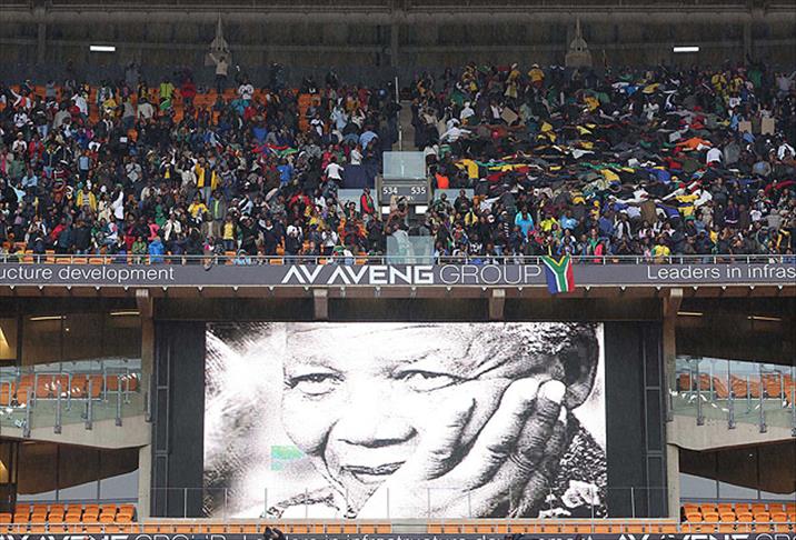 Johannesburg'da yer alan FNB Stadyumu'nda yapılan resmi anma töreninde, şiddetli yağışların aksattığı trafik nedeniyle kısa süreli gecikme yaşandı.
