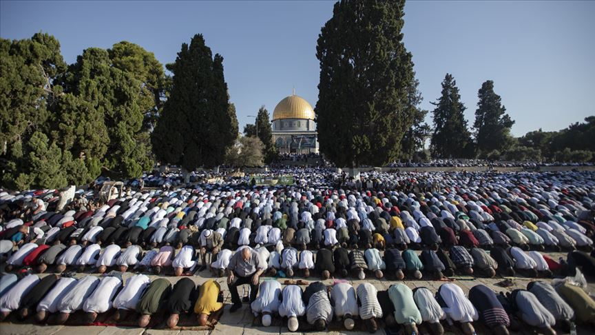 Kudüs İslami Vakıflar Basın Sözcüsü Firas Dibs yaptığı yazılı açıklamada, Harem-i Şerif'te yüz elli bini aşkın Müslümanın bayram namazı kıldığını belirtti.