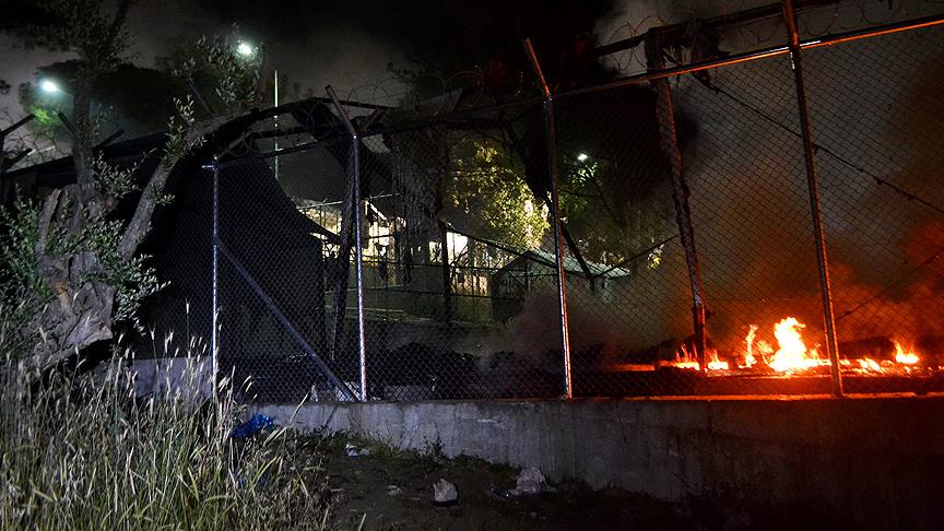 Midilli'de göçmenler iltica bürolarını ateşe verdi