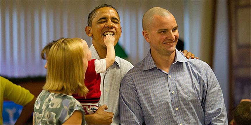 Barack Obama, askerler ve aileleriyle fotoğraf çektirmeyi de ihmal etmedi.
