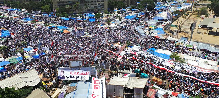 Kahire'de ordunun baskısına rağmen yüz binlerce kişi Rabiat'ül Adevviye Meydanına akın etti. Cuma namazını 35 derece sıcağın altında kılan göstericiler meydandaki bekleyişlerini sürdürüyor.