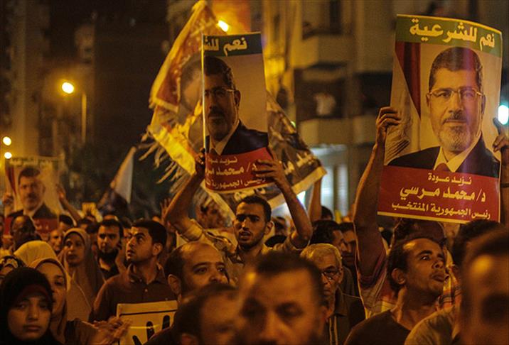 Darbe karşıtlarının, başkent Kahire'nin Mukrim Abid caddesinde insan zinciri oluşturarak gerçekleştirdiği gösteride, Savunma Bakanı Abdulfettah Es-Sisi karşıtı sloganlar atılırken, ordunun yönetime el koyması protesto edildi.