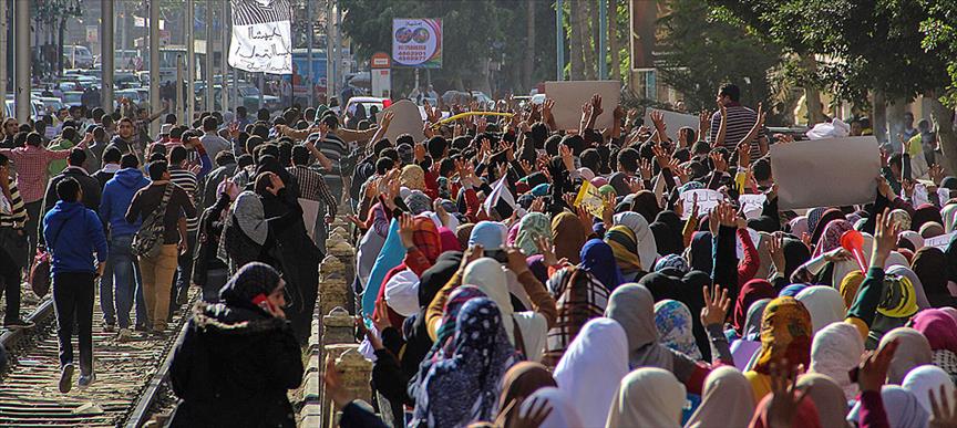 Mısır'ın kuzeyindeki İskenderiye'de Sidi Beşir bölgesindeki Cemal Abdunnasır Caddesi'nde başlayan yürüyüşte 11'er yıl hapis cezasına çarptırılan 14 kız öğrencinin serbest bırakılması istendi. Üzerinde "Rabia" işaretinin bulunduğu dövizler ve tutuklanan kız öğrencilerin resimlerini taşıyan göstericiler darbe karşıtlarına yönelik gözaltı operasyonlarından sorumlu tuttukları İçişleri Bakanı Muhammed İbrahim aleyhinde sloganlar attı.