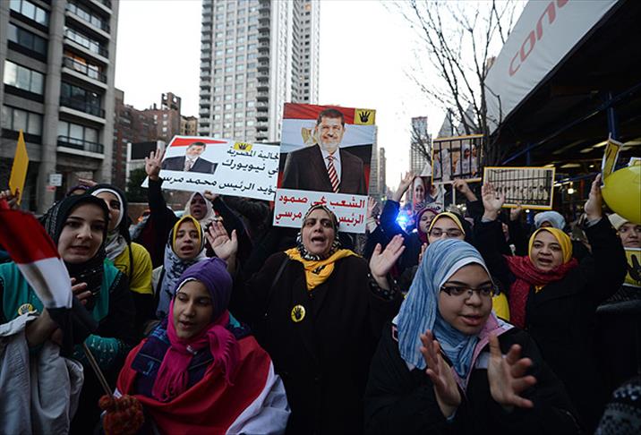 New York'ta yaşayan Mısırlılar, "Sabah 7 Hareketi" üyesi genç kızlara verilen ağır hapis cezalarını protesto amacıyla Mısır'ın New York Başkonsolosluğu önünde biraraya geldi.