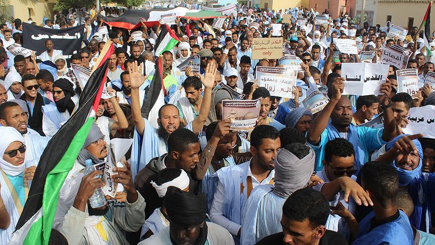 Moritanya'nın başkenti Novakşot'ta, aralarında milletvekilleri ve sivil toplum kuruluşlarından temsilcilerin de olduğu yüzlerce kişi, "Kudüs Filistin'in ebedi başkentidir." diye slogan attı.