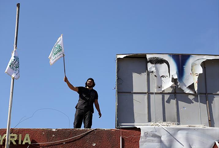 Suriye'nin Lazkiye kentine bağlı Keseb Sınır Kapısı'nı ele geçiren muhalifler, Esed'in fotoğrafını yaktı.