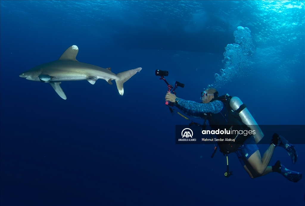 İklim değişikliği ile insan kaynaklı kirlenme gibi sebeplerle yok olma tehlikesiyle karşı karşıya kalan Kızıldeniz'in beyaz yüzgeç resif köpek balığı ve uzun burunlu dönücü yunusları, AA foto muhabirleri tarafından görüntülendi.