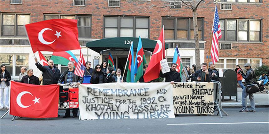 New York merkezli Genç Türkler (Young Turks) ile New York Azerbaycan Derneği tarafından düzenlenen ve Türk Amerikan Dernekleri Federasyonu'nun (TADF) desteklediği protesto gösterisine Türk ve Azeri asıllı çok sayıda kişi katıldı. Protesto gösterisine başta Amerika Azerbaycan Derneği, Amerika Azerbaycan Konseyi olmak üzere diğer Türk ve Azeri dernekleri de destek verdi.
