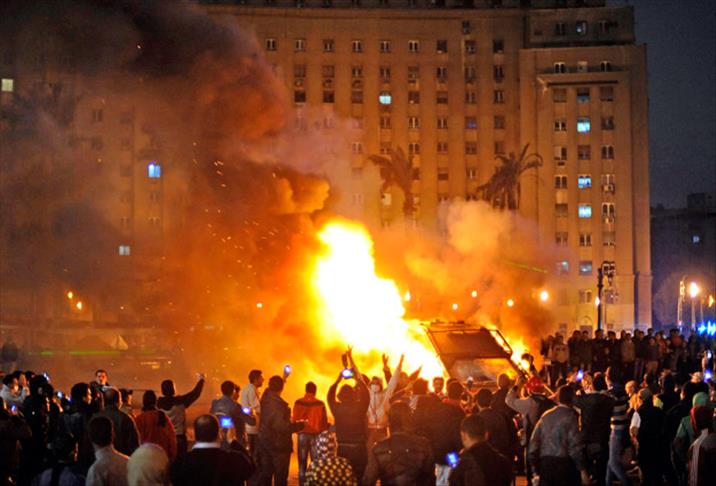 25 Ocak devriminin yıl dönümünde başlayan gösteriler 5. gününe girerken, akşam saatlerinde Tahrir Meydanı ve çevresinde göstericilerle güvenlik güçleri arasında çatışma çıkmış ve polis göstericilerin sayıca çok olması nedeniyle geri çekilmek zorunda kalmıştı.