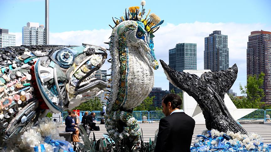ABD'nin New York kentinde BM Genel Merkezi'nde ilk defa düzenlenen, denizlerin, okyanusların ve su kaynaklarının kirliliğine odaklanılan "Okyanus Konferansı"nda, okyanuslardaki plastik atıklardan yapılan heykeller dikkat çekti.