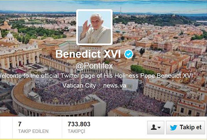 Twitter'da 3 Aralık'ta Pontifex adıyla hesap açan ve 700 binin üzerinde takipçisi bulunan Papa 16. Benediktus, İngilizce yazdığı ilk iletisinde, "Değerli arkadaşlar, sizinle twitter aracılığıyla iletişime geçmekten memnuniyet duyuyorum. Cömert cevaplarınız için teşekkür ederim. Hepinizi kalpten kutsuyorum" ifadelerini kullandı.