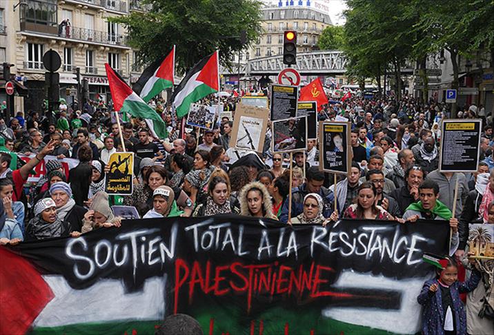 Geçen pazar günü Paris'te yapılan Filistin'e destek eylemi sonrasında sinagoga yapılan saldırılarda fatura Müslümanlara kesilmiş ve Fransa'nın böyle saldırılara göz yummacağı belirtilmişti. İçişleri Bakanı Bernard Cazeneuve, bugünkü gösterilerin halkın güvenliğini tehdit edeceğini dile getirmiş ve ardından valilik gösterileri yasakladığını duyurmuştu. Fransız medyası ve siyasetçiler Müslümanları sinagoga saldırmakla suçlarken, Müslüman örgütler asıl saldırganların Yahudi aşırı gruplar olduğunu belirtiyor.