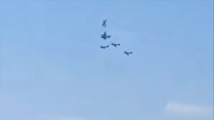 Gösteriyi izleyenler tarafından kaydedilen ve sosyal medyada paylaşılan görüntülerde, gösteri uçuşuna katılan 6 uçaktan birinin önce gökyüzünde alçaldığı, daha sonra başka bir uçakla çarpıştığı ve alev alarak yere çakıldığı görülüyor.