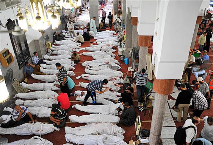 "100 gün önce ülke genelinde 2 bin 600 kişi vahşice katledildi. 7 bin kişi yaralandı. Hastaneler, içindeki yaralılarla birlikte yakılıp yıkıldı. Katliamın boyutları örtbas edilmek için bazı cesetler bilinmeyen yerlere götürüldü. Binlerce insan tutuklandı. Katliamın sorumluları bugün darbe yönetiminde ve serbest. Mısır'ın seçilmiş ve meşru yöneticileri ise tutuklandı. Bu durum, tüm dünya için, insanlık için, İslam dünyası için kara bir leke olarak tarihe geçti. Darbe yönetimi darbe karşıtı gösterileri şiddetle bastırmaya, Rabia işareti yapan sporcuları ve öğrencileri cezalandırmaya devam ediyor."