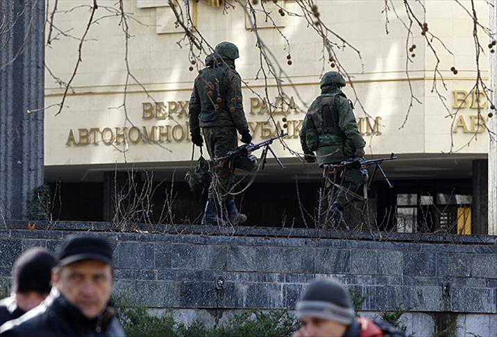 Öğlen saatlerinde askeri bir araçla Akmescit'teki Ukrayna Deniz Kuvvetleri birliği binasının önüne gelen 12 Rus askeri, binanın yaklaşık 100 metre kadar ilerisinde bekleyişini sürdürüyor. Binanın önünde ise 100'e yakın Rusya yanlısı gösterici, Rusya lehine sloganlar atıyor. Söz konusu binayı çevreleyen sokaklar ise trafiğe kapatılmış durumda.