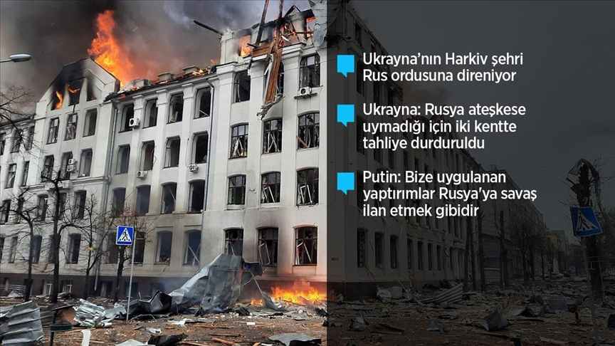 Rus ordusunun şiddetli saldırılarına maruz kalan Ukrayna'nın Harkiv Belediye Başkanı İgor Terehov, şehirdeki askerlerin Rus ordusuna karşı şiddetli bir direniş gösterdiğini, düşmanı asker ve teçhizat kaybına uğrattığını belirtti.