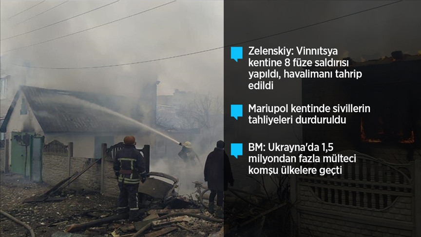 Ukrayna Devlet Başkanı Zelenskiy, "Vinnitsya kentine 8 füze saldırısı yapıldı, buradaki havalimanı tamamıyla tahrip edildi." dedi.
