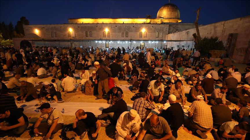 İşgal altındaki Doğu Kudüs'ün Eski Şehir bölgesinde bulunan Mescid-i Aksa'nın avlusunda Sadakataşı Derneği tarafından Kudüs Zekat Komitesi aracılığıyla binlerce kişilik iftar sofrası kuruldu.