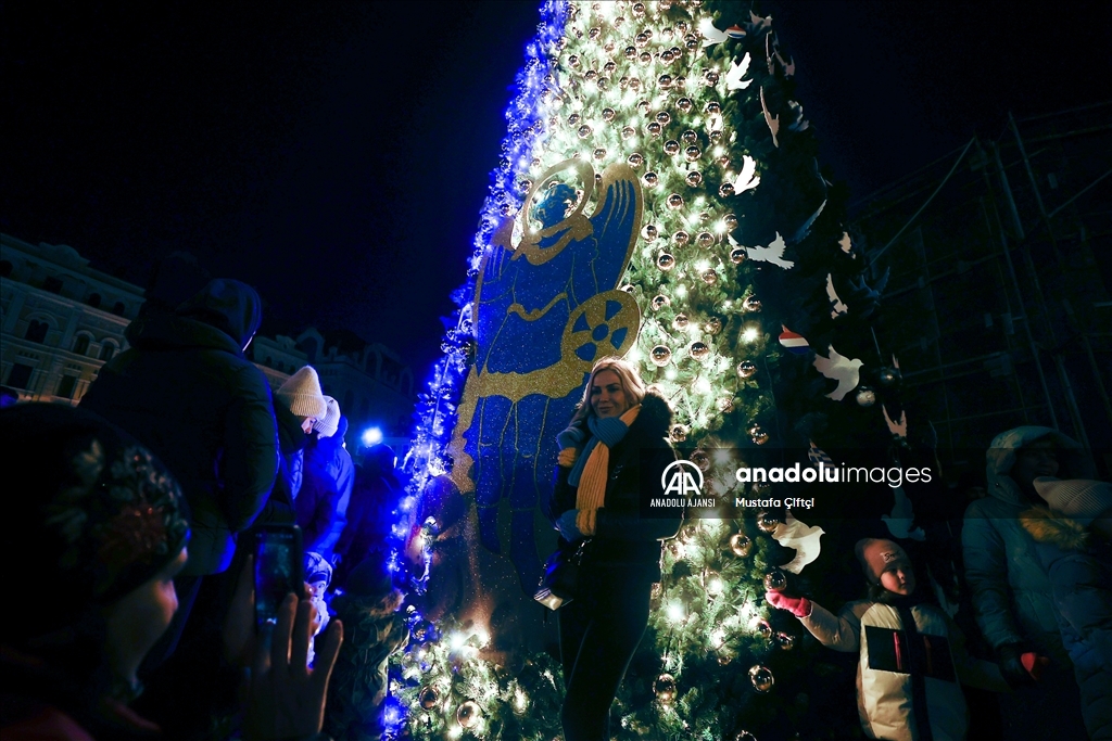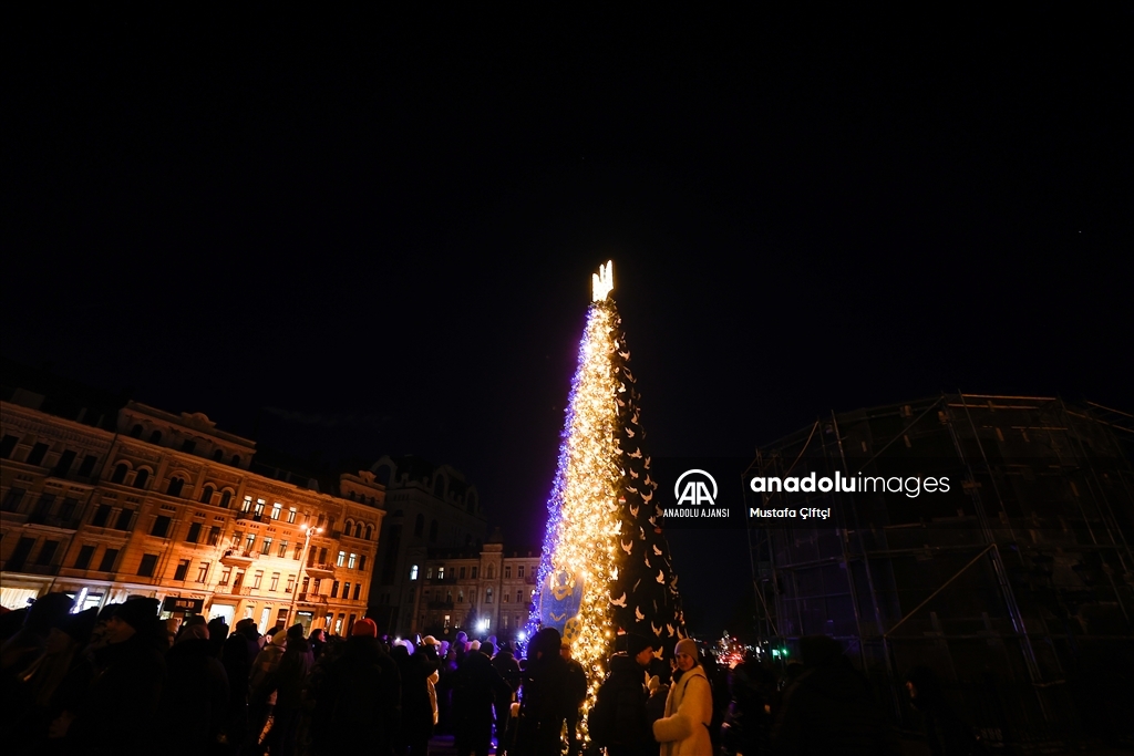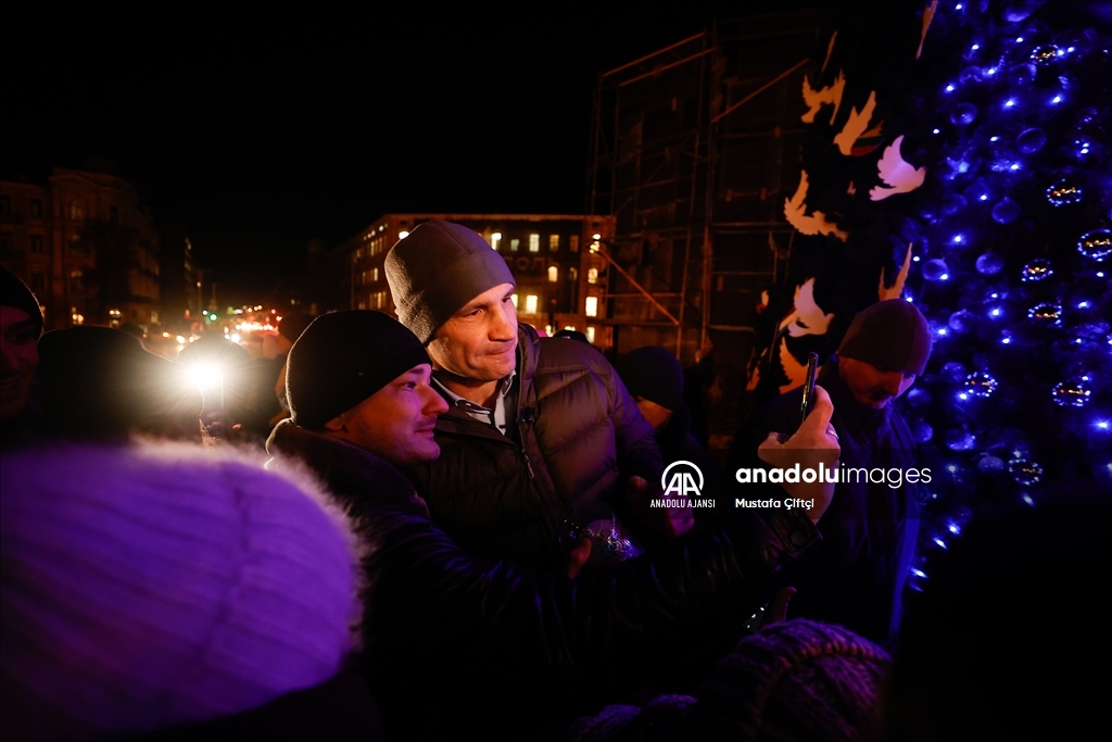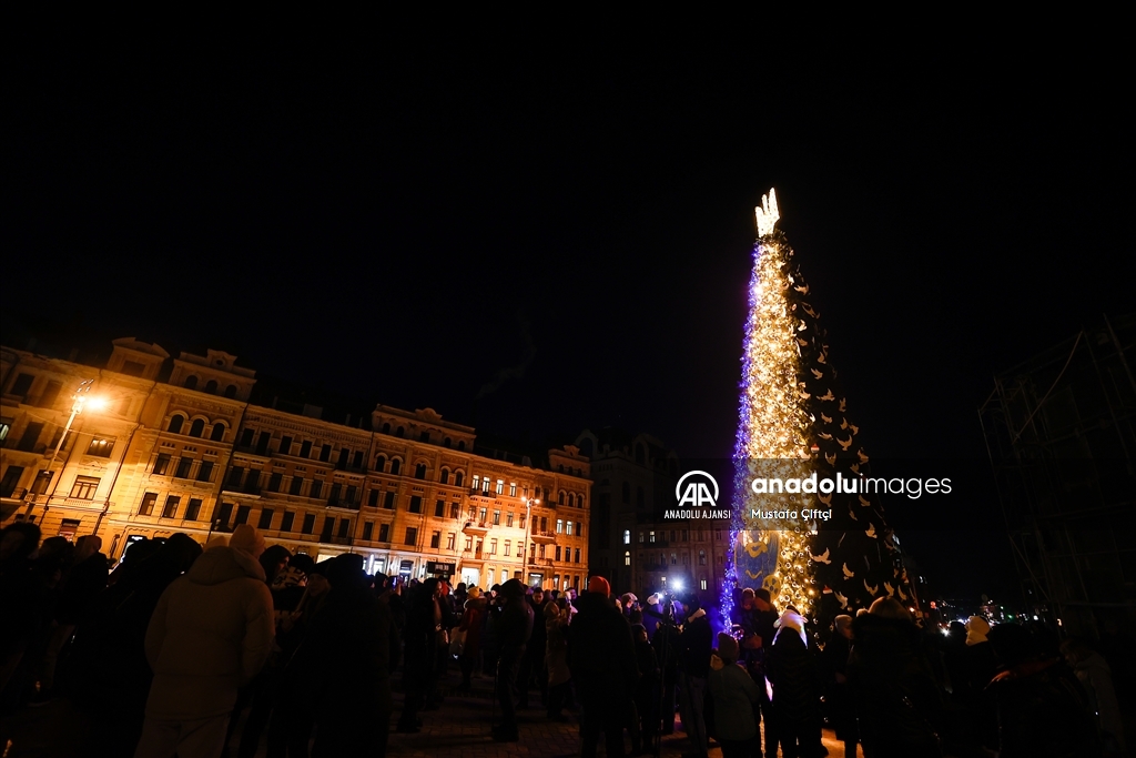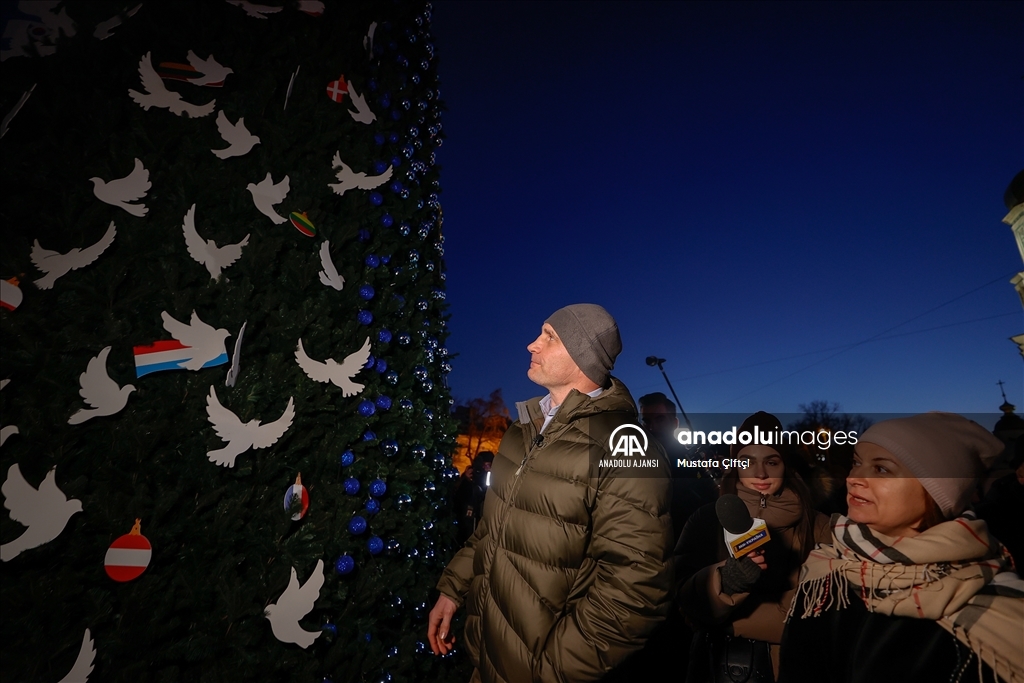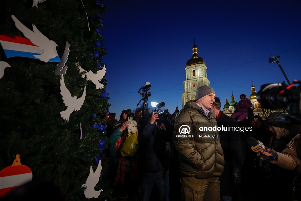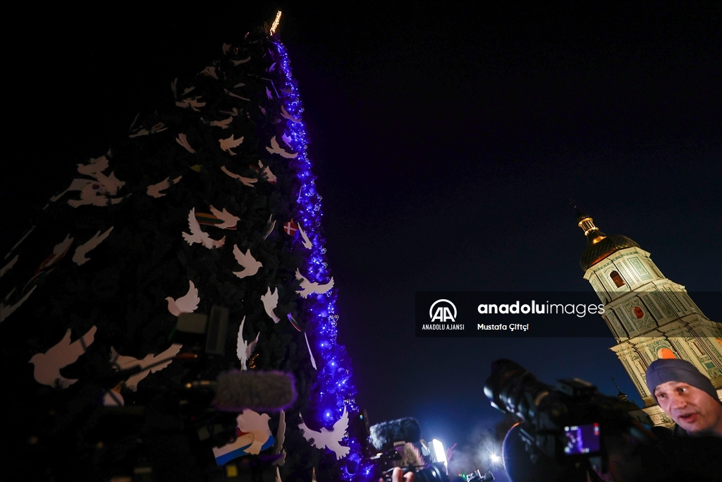 Sivil altyapıya Rus füze ve İHA saldırıları nedeniyle elektrik kesintilerinin sürdüğü başkent Kiev'deki geleneksel noel ağacı, Belediye Başkanı Vitaliy Kliçko'nun katıldığı bir törenle ışıklandırıldı.