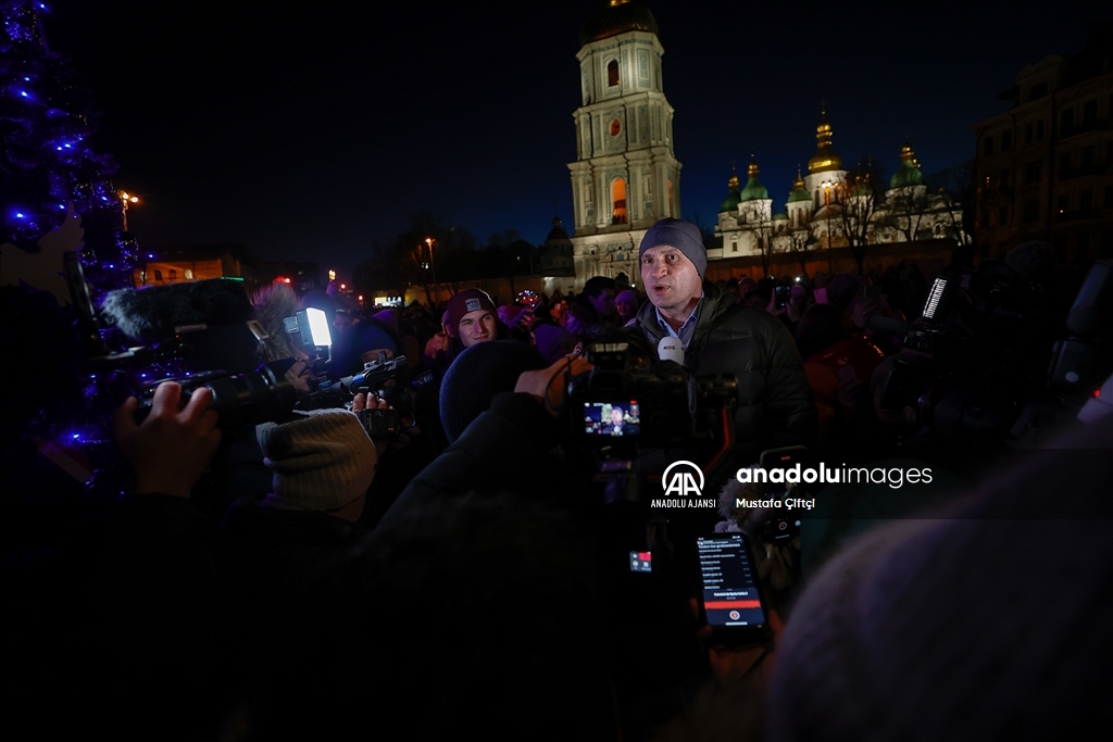 Törene katılan Kiev Belediye Başkanı Kliçko, gazetecilere yaptığı açıklamada bugün ülkesinde Noel Günü kutlamalarının yapıldığını belirterek noel ağacının da geleneksel olarak bugün aydınlatıldığını belirtti.