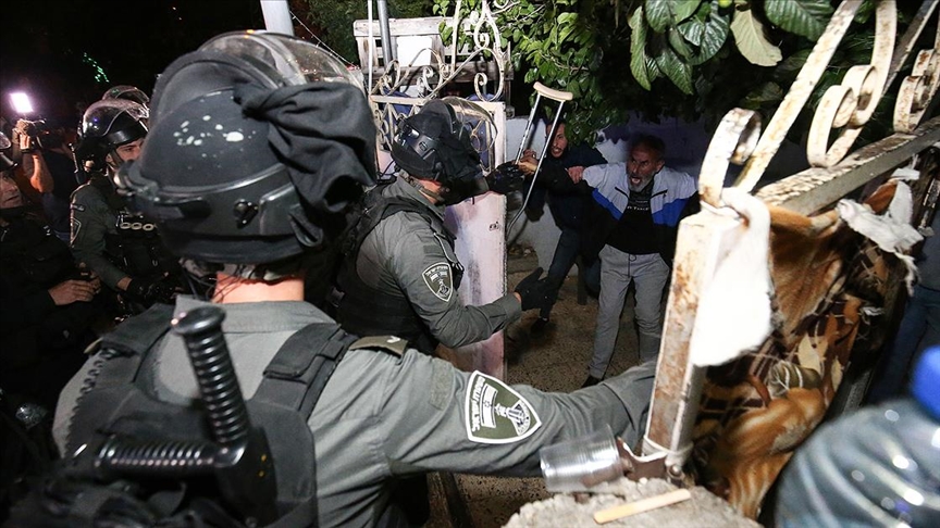 Kudüs'teki Filistinliler, İsrail yönetiminin Doğu Kudüs'ün Şeyh Cerrah Mahallesi'ndeki bazı aileleri evlerinden zorla çıkarma planını protesto etmek için bölgede toplanmak istedi. Mahalleye çıkan yolları kapatan İsrail polisi, Filistinli bir aileye ait evin kapısını zorla kırarak baskın düzenledi, 2 kişiyi gözaltına aldı. ( Mostafa Alkharouf - Anadolu Ajansı )
