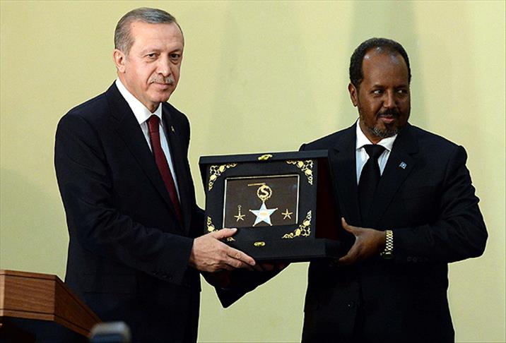 Konuşmasının ardından, Cumhurbaşkanı Mahmud, Somali'ye katkılarından dolayı Erdoğan'a madalya ve sertifika verdi.
