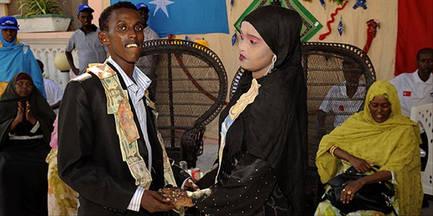 Somalili Grup Kang Band'ın müziği eşliğinde oynayan gelin ve damada, hediye olarak Türkler dolar, akrabaları ise Somali şilini taktı.