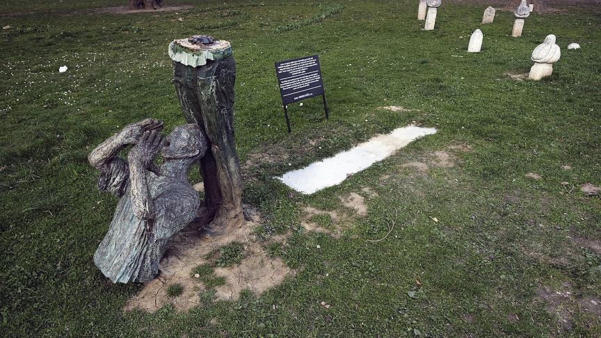 Saraybosna'daki bir parkta yer alan, Bosna Savaşı'nda Sırp askerler tarafından kandırılarak öldürülen baba ile oğlunu simgeleyen heykele saldırıda bulunuldu.