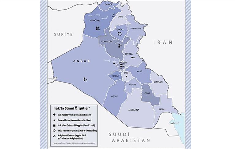 SETA tarafından hazırlanan "Irak'ta İsyan'ın Haritası: Silahlı Gruplar" raporu bölgedede IŞİD dışındaki Sünni örgütleri ve bu örgütlerin nihai amaçlarını masaya yatırıyor. Raporda yer alan haritada ise Sünni grupların Irak'ın hangi bölgelerinde etkin olduğu gösteriliyor.