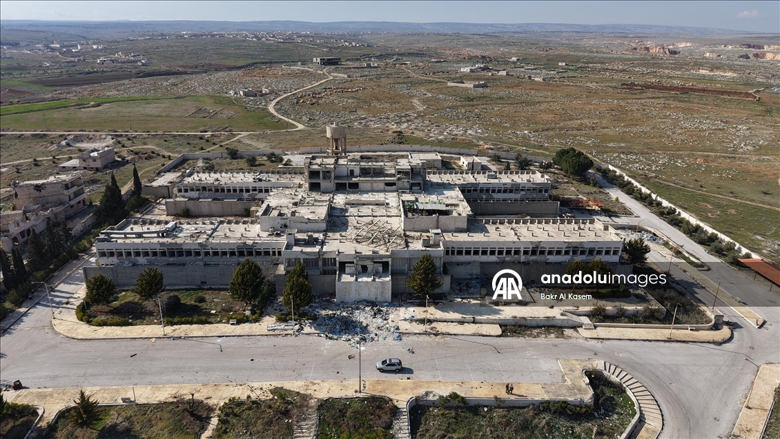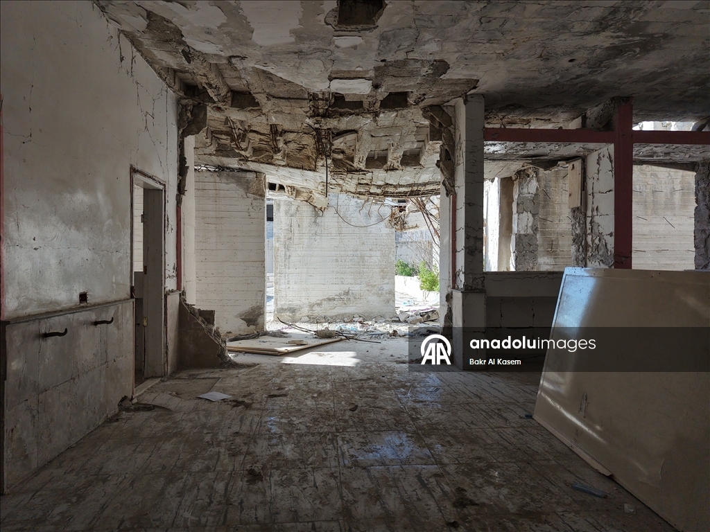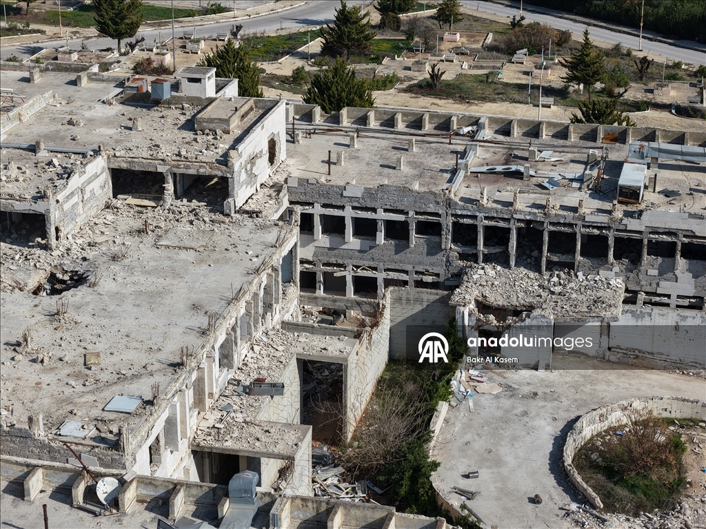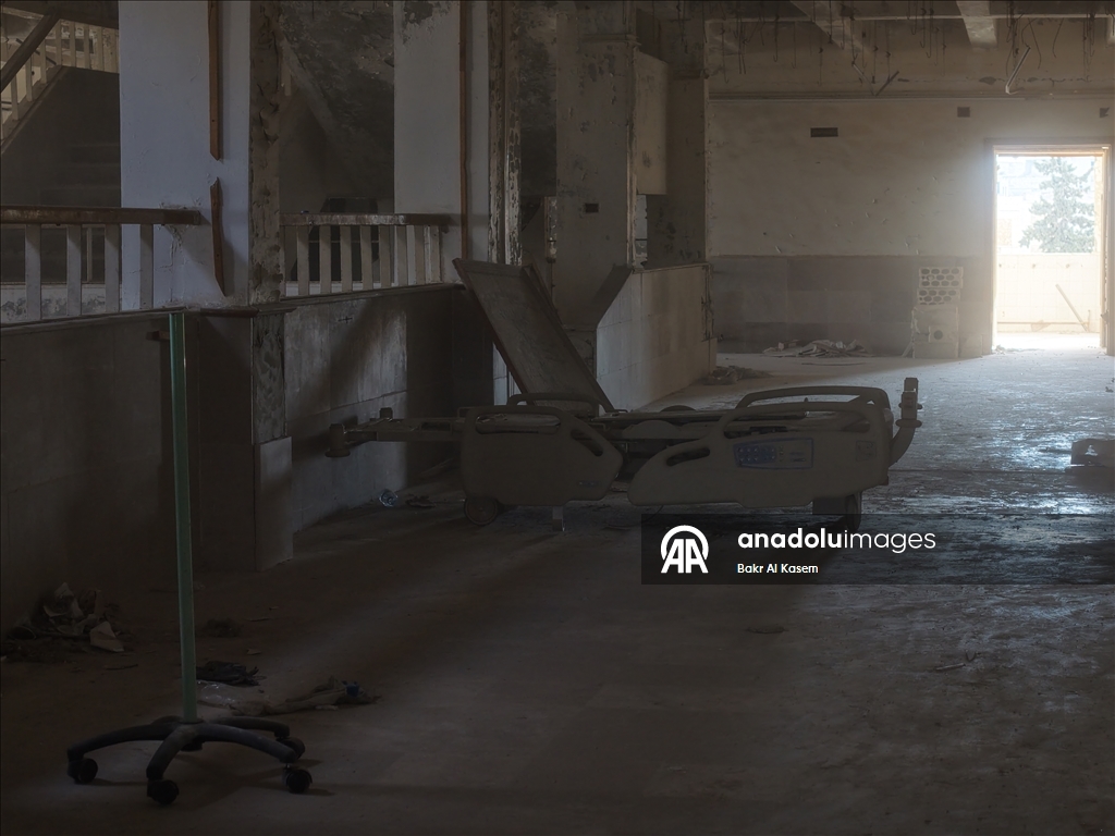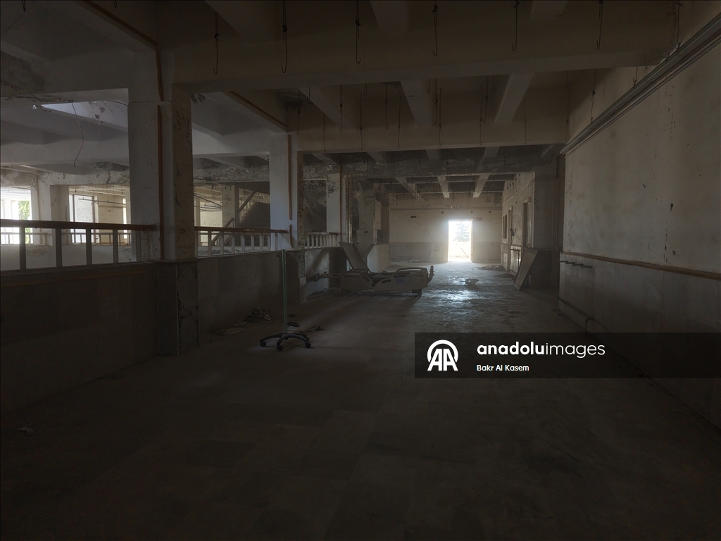 Suriye'nin kuzeybatısındaki İdlib ilinde devrik Beşşar Esed rejimi güçlerinin hava saldırılarında yıkılan Maarratünnuman Ulusal Hastanesi yeniden inşa edilmeyi ve hizmete açılmayı bekliyor.