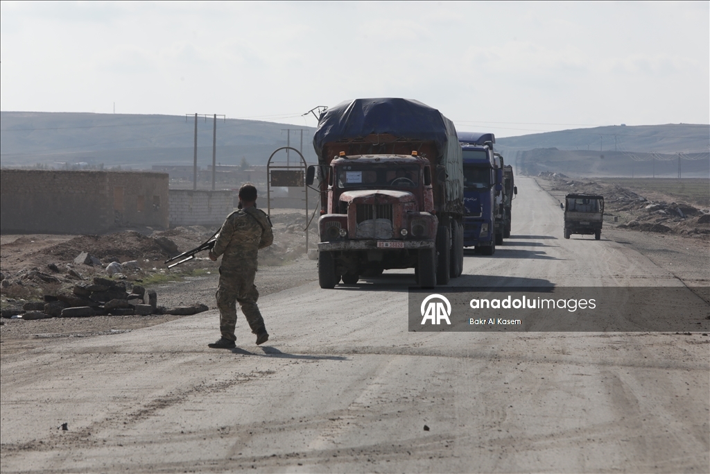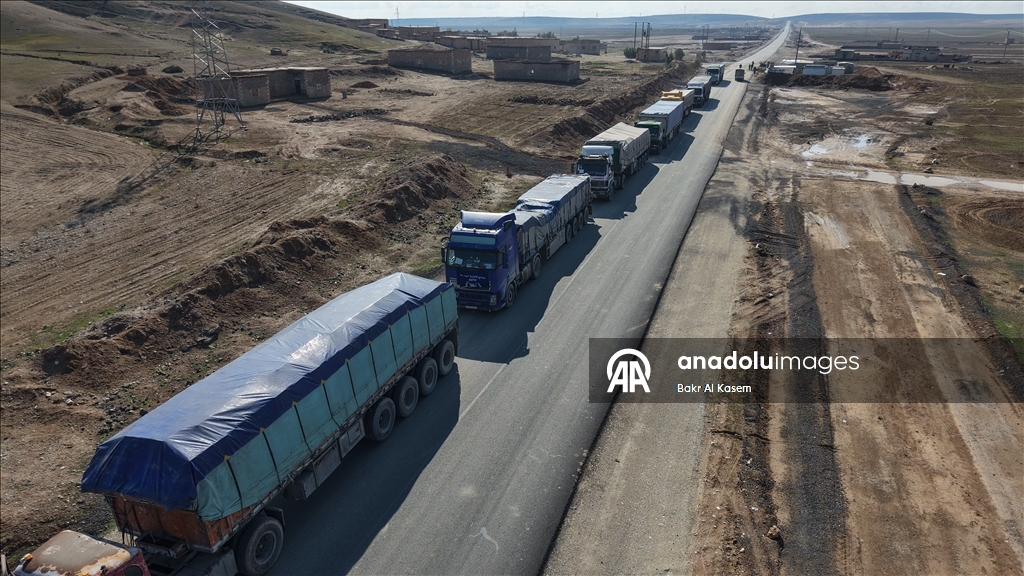 BM araçlarının eşlik ettiği 23 kamyonluk gıda malzemesini Kamışlı'ya ulaştıran yardım tırları, terör örgütü YPG'nin işgalindeki bölgelerden geçerek Suriye hükümetinin kontrolündeki bölgelere doğru hareket etti. Aynı şekilde, başkent Şam'dan yola çıkan 10 gıda yüklü yardım tırı BM eşliğinde YPG'nin işgalindeki Haseke, Kamışlı hattına doğru ilerledi.