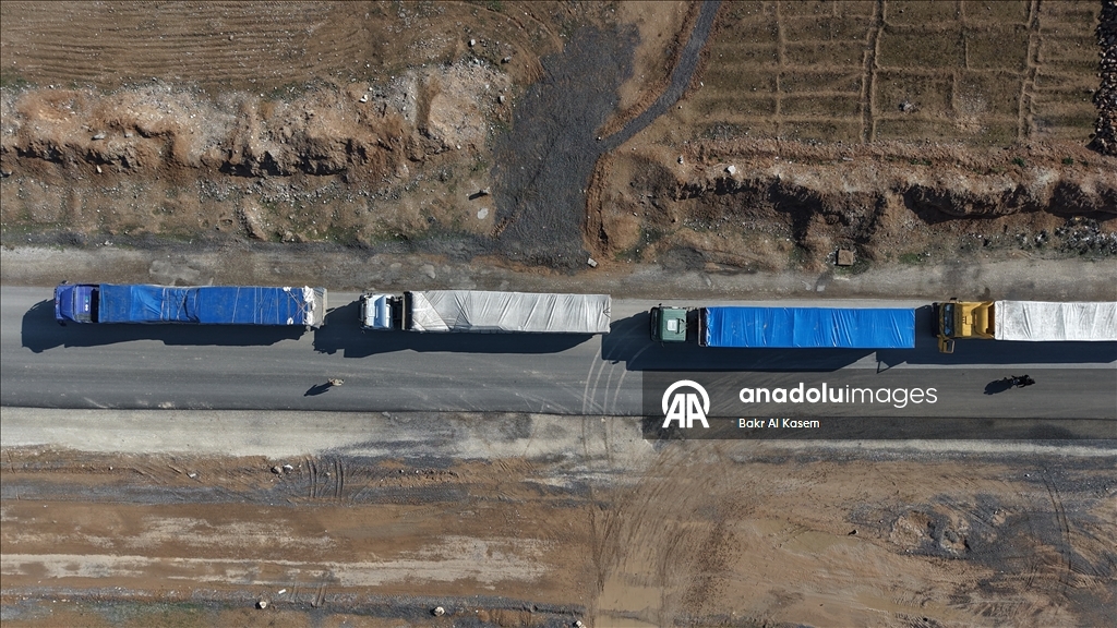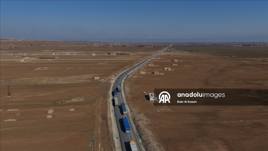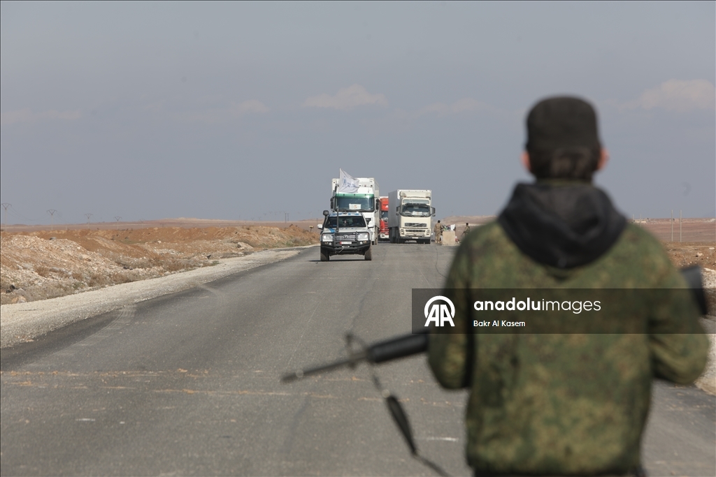 AA ekibi, Haseke'nin güneydoğusundaki koridordan geçen yardım kafilesini görüntüledi.