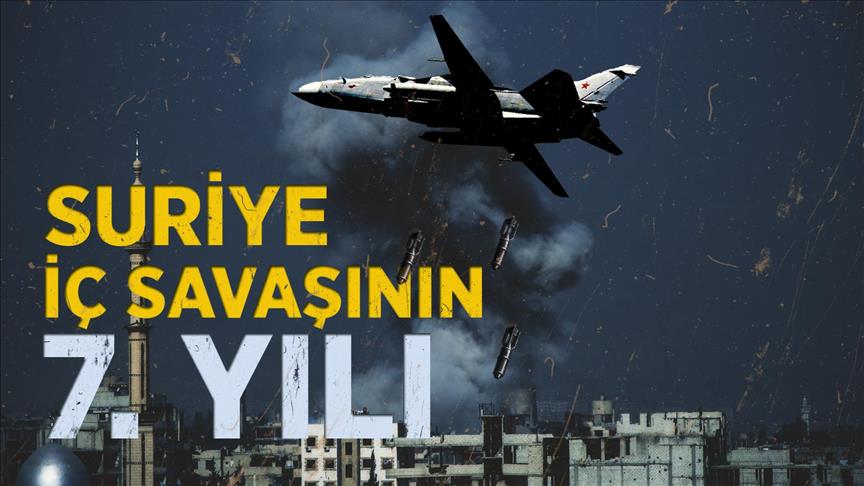 Suriye'de Mart 2011'de başlayan iç savaş, 7. yılını doldurdu. Terör örgütü DEAŞ'ın doğuşu, ABD'nin DEAŞ ile mücadele bahanesiyle destek verdiği YPG/PKK'nın ülkenin dörtte birini işgal etmesi, Rusya'nın savaşa dahil olarak ibreyi muhaliflerden rejimin lehine çevirmesi, Esed rejiminin Rusya desteğiyle bekasını garantilemesi, binleri öldürdüğü kimyasal silah katliamlarından sorumlu tutulmaması ve Türkiye'nin YPG/PKK-DEAŞ'a karşı operasyonlar düzenlemesi, iç savaşın dönüm noktaları arasında yer alıyor.