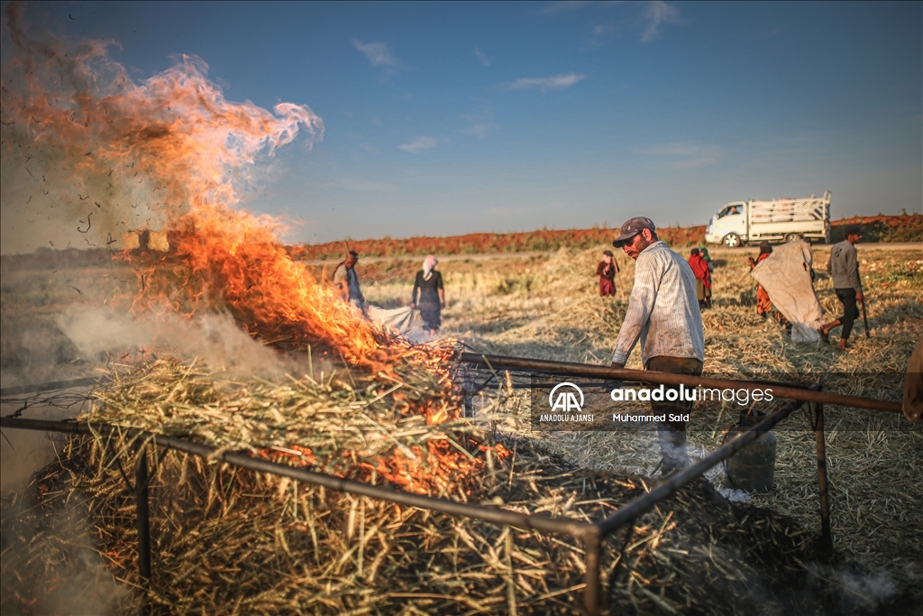 Suriye'nin kuzeybatısındaki İdlib'de firik hasadı, Beşşar Esed rejimi güçlerince yerinden edilen siviller için gelir kaynağı sağlıyor.
